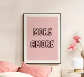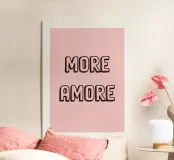 Lettrage façon broderie noire sur fond rose poudré pour un message simple et romantique. Une touche italienne pleine de douceur pour la chambre ou le salon. Idéale en cadeau pour célébrer l’amour au quotidien.