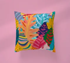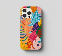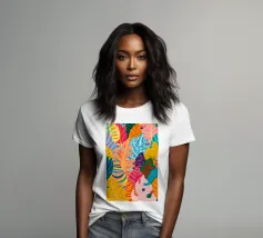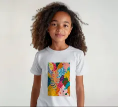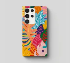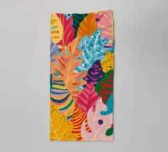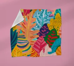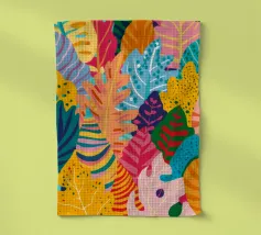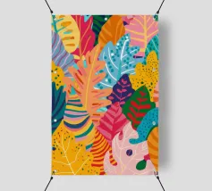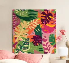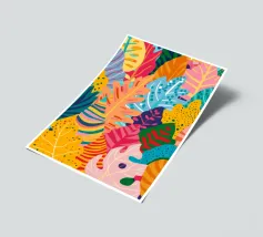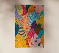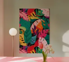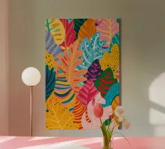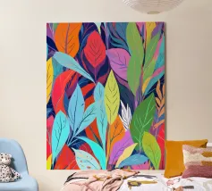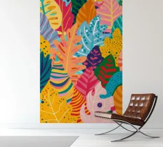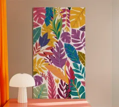 Le foglie che cadono in colori elettrici evocano una cascata esotica di ritmo organico.