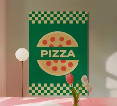 Celebrate il fascino irresistibile della pizza con questo poster in stile retrò! Caratterizzata da un design audace e minimalista di questa deliziosa pizza, questa opera d'arte aggiunge un tocco giocoso ma classico a qualsiasi spazio. Perfetta per le cucine e per gli amanti della pizza, è un modo elegante e gustoso per dare un tocco retrò al vostro arredamento! Una deliziosa pizza rotonda con funghi, mozzarella e foglie di basilico.
