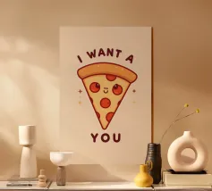 Pizza slice with "I WANT A Pizza YOU" plexiglass