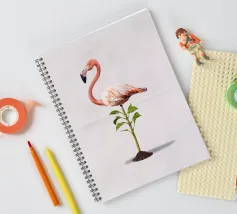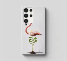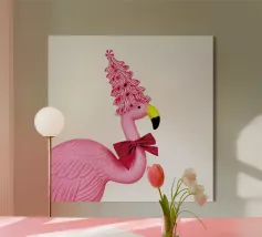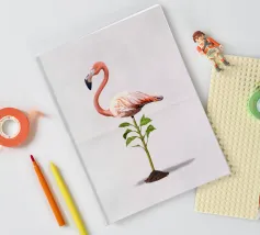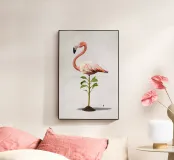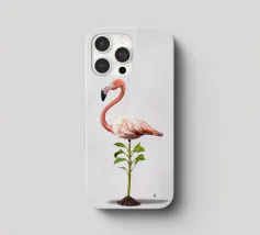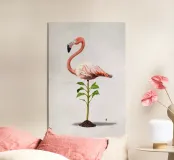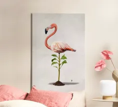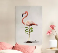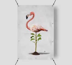 Illustrazione comica della rielaborazione dell'espressione "piedi ben piantati a terra". Utilizzando uno degli uccelli più affascinanti e statici in circolazione: il fenicottero.