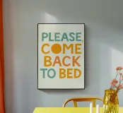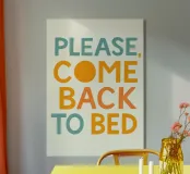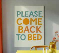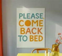 Un design tipografico morbido e invitante che dona calore e intimità al vostro spazio. "Please Come Back to Bed" è un dolce richiamo all'amore, al comfort e alle mattine di sonno insieme. Perfetto per le camere da letto, per i regali di coppia o per una decorazione murale rilassante.
