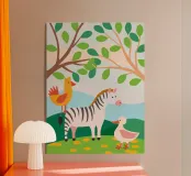 Decorate la vostra casa o il vostro ufficio con questa illustrazione unica di pollo e anatra zebrati! Questo disegno, che combina i motivi zebrati di un pollo e di un'anatra, conferisce al vostro spazio un tocco artistico e moderno.