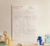 Una planimetria del Centre d'Art Georges Pompidou, a Parigi. Con caratteri tipografici moderni.