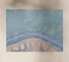 Immagine astratta di una piscina in Marocco. Piastrelle blu e acqua limpida in una piscina.