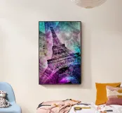 La Torre Eiffel è un punto di riferimento della capitale francese Parigi e simboleggia l'intera Francia in tutto il mondo. L'esposizione multipla della torre permette di vedere nel dettaglio i dettagli architettonici. Gli accenti di colore moderni e brillanti creano un'opera d'arte decorativa.