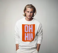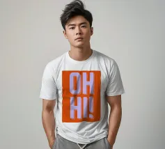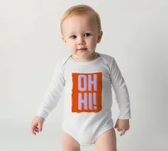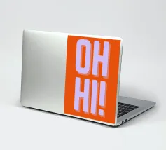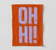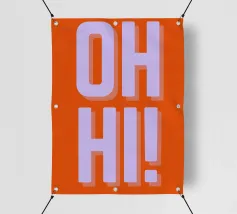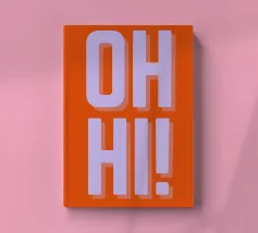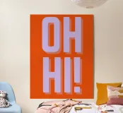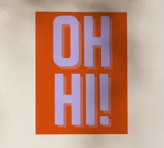 Dai un tocco di personalità ai tuoi interni con questa straordinaria stampa artistica tipografica. Caratterizzato da un giocoso saluto "OH HI!", il design utilizza linee allungate e pulite e un'ombra sofisticata per creare un senso di profondità architettonica. Il vivace sfondo arancione fa da tela di fondo energica alle morbide lettere color lavanda, offrendo un'estetica color block alla moda ma senza tempo. Perfetto per ingressi o pareti da galleria, questo pezzo bilancia il design grafico professionale con uno spirito caldo e accogliente.