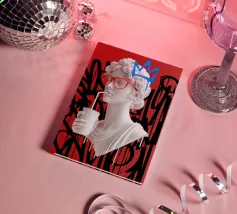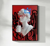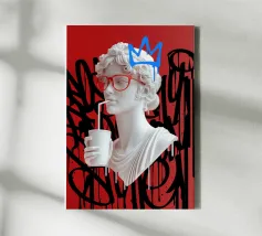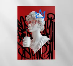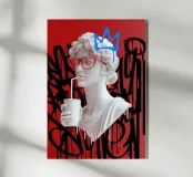 "La perfezione classica entra nel caos moderno: una dea greca sorseggia il suo drink con la disinvoltura di chi non cerca più il culto. Circondata da graffiti, diventa l'incarnazione dell'eterno che si scontra con il fugace, a ricordare che anche il divino può trovare una nuova voce nella street art."