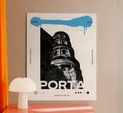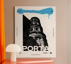 Questa moderna opera d'arte combina il significato storico della Porta Nigra con un design grafico contemporaneo. Il motivo mostra una sezione suggestiva del sito di Treviri, patrimonio mondiale dell'UNESCO, realizzata in stile puntinista con intensi contrasti. La Porta viene così reinterpretata come simbolo del legame tra passato e presente. Nella parte superiore, una linea colorata a spruzzo spezza la monotonia del motivo in bianco e nero e crea un accento dinamico. Ciascuna delle nove stampe varia nel colore della linea.