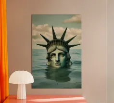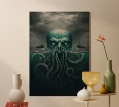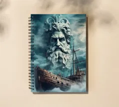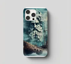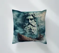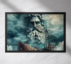 Poseidone è un'imponente opera d'arte che mostra il dio del mare nel suo volto (ritratto). Si erge dalle onde, circondato da un mare turbolento e da nuvole drammatiche.