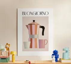 caffè caffettiera moka poster caffè retrò caffè italiano saluto mattutino caffè in infusione caffettiera rossa bandiera italiana utensili da cucina vapore dal caffè sfondo verde arredamento cucina bevanda colazione attrezzatura da cucina bevanda calda caffettiera metallica cultura del caffè caffeina elettrodomestico da cucina