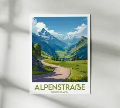 Questo poster della Germania mostra un idilliaco paesaggio di villaggio con tradizionali case a graticcio, una chiesa pittoresca e le maestose Alpi sullo sfondo. I prati verdi pieni di fiori e il cielo limpido creano un'atmosfera tranquilla e invitante. Questo poster porta in casa vostra un pezzo di casa tedesca, di natura e di tradizione - perfetto per gli amanti degli idilli rurali, per gli appassionati di montagna o per chiunque desideri un motivo decorativo dal fascino autentico. In salotto, in camera da letto o in ufficio: questo poster attira l'attenzione e garantisce pace e armonia.