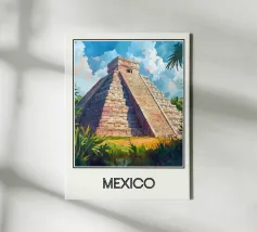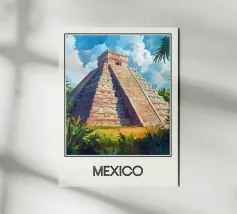 Una magnifica illustrazione della piramide di Chichén Itzá, uno dei siti archeologici più emblematici del Messico. L'opera cattura la grandezza e il mistero di questa antica città maya, immersa nella luce e circondata da una natura lussureggiante. Un poster ideale per gli appassionati di storia e di viaggi.