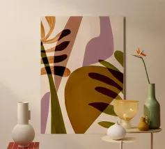 Un dittico di forme di foglie traslucide e strati organici: pura eleganza! I toni morbidi dell'oliva, del beige e del grigio si sovrappongono come carta velina traslucida e creano profondità spaziale. Ispirato a Georgia O'Keeffe, il risultato è un equilibrio meditativo tra natura e astrazione. Le transizioni nebbiose e le foglie bianche stilizzate conferiscono all'opera una raffinatezza senza tempo. Una composizione armoniosa sulla leggerezza, la trasparenza e la sottile bellezza del mondo vegetale: rilassante, elegante, senza tempo. Perfetta per ambienti che combinano la tranquillità naturale con il design moderno.