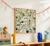 A lush tapestry of wild botanicals, this layered watercolor artwork brings earthy greens, golden ochres, and organic textures together in perfect harmony. The soft, painterly composition evokes an overgrown garden or meadow breeze—ideal for warm modern interiors, nature-inspired gallery walls, or rustic-contemporary spaces.