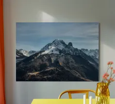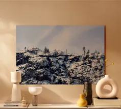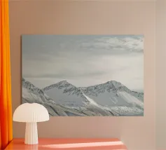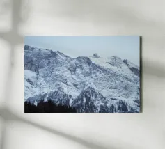 Un incontro intimo e immenso con la montagna. Questa fotografia potente e minimalista astrae il paesaggio, concentrandosi sulla consistenza grezza e primordiale di una parete rocciosa innevata. Ogni crepa e fessura racconta una storia di tempi geologici antichi, creando un arazzo mozzafiato di pietra e ghiaccio. La tavolozza monocromatica ne esalta la bellezza cruda e tattile. Un pezzo audace e contemplativo che celebra la potenza elementare e i dettagli intricati della natura, conferendo alla parete una presenza monumentale e radicata.