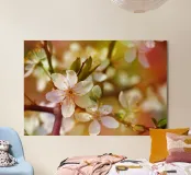 Delicate spring blossoms on a branch bathed in warm light. Soft focus and natural colours emphasise the lightness and freshness of the scene.