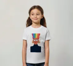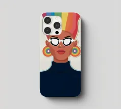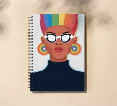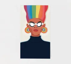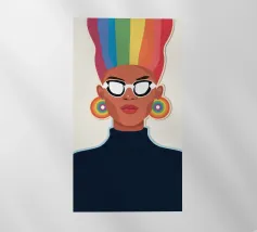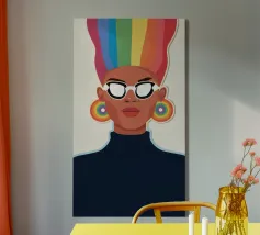 Un ritratto bello e potente di una donna con capelli color arcobaleno che si irradiano dalla testa. L'immagine è una celebrazione vibrante e gioiosa della creatività, della diversità e dell'identità espressiva.