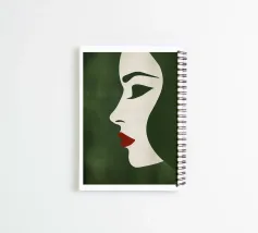 Illustrazione minimalista di un elegante profilo femminile in bianco a contrasto con uno sfondo verde intenso. Le labbra rosse e le linee pulite sottolineano un'estetica sofisticata e senza tempo. Questa composizione moderna cattura grazia e mistero, ideale per progetti visivi che si concentrano su eleganza e semplicità.