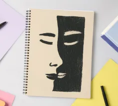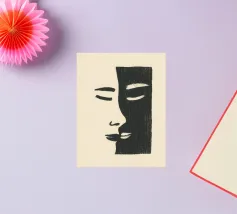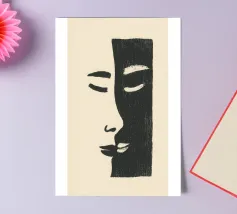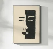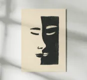 Un volto minimalista di profilo, in nero deciso su uno sfondo chiaro. Occhi chiusi, linee nette e pennellate visibili creano una composizione grafica espressiva tra calma e presenza.