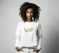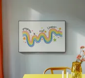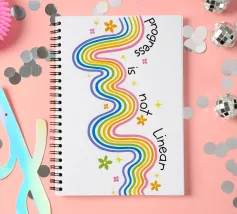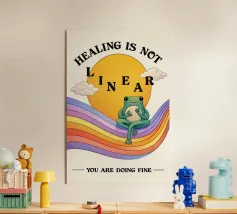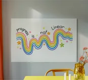 Un'allegra opera d'arte di ispirazione retrò caratterizzata da vivaci onde arcobaleno, fiori giocosi e la citazione incoraggiante "Il progresso non è lineare". Questo design colorato simboleggia la crescita, la resilienza e l'amore per se stessi in uno stile divertente e positivo. Perfetto per illuminare soggiorni, camere da letto, studi o spazi creativi con energia gioiosa e motivazione.