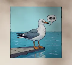Il gabbiano sta chiamando, ma la sua voce è stata soffocata dall'acqua. Una rappresentazione divertente, che vale sempre la pena di guardare.