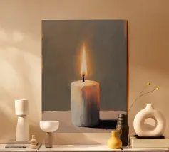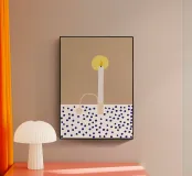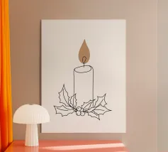 Poster minimalista con candeliere classico dal design scandinavo in bianco su sfondo puntinato. La pulizia e la calma conferiscono eleganza e chiarezza.