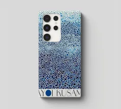 punti cerchi blu bianco modello densità gradiente esposizione artista nome titolo lettere testo colore composizione arte ripetizione disposizione sfondo museo