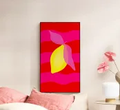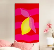 Limone minimalista su audaci onde rosse e rosa. Linee chiare, colori decisi: un design di tendenza pieno di freschezza.