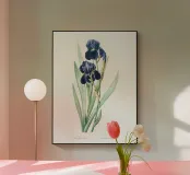Graziosa stampa floreale. Illustrazione di iris in stile vintage! I suoi petali viola intenso e i dettagli delicati la rendono un pezzo perfetto per gli amanti dei fiori, dei giardinieri e dell'arte vintage. Sia che si tratti di decorare la casa, di creare un diario botanico o di cercare un regalo floreale unico, questa stampa conferisce un fascino classico a qualsiasi spazio.