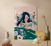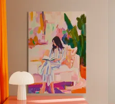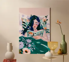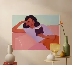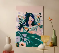 Questa illustrazione contemporanea ritrae un sereno rituale mattutino, in cui la lettura diventa un atto di calma e di connessione con se stessi. Le morbide tonalità pastello si fondono con pennellate espressive e motivi botanici, creando un'atmosfera calda, simile a un bozzolo. La composizione rilassata e la tavolozza di colori delicati evocano comfort, introspezione ed equilibrio emotivo. In equilibrio tra astrazione e chiarezza figurativa, quest'opera d'arte è ideale per interni moderni, editoriali di lifestyle o stampe d'arte che celebrano una vita lenta e momenti di consapevolezza.
