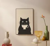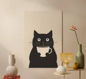 Quest'opera d'arte distilla la narrazione in simbolo attraverso una riduzione estrema. La figura è costruita da forme piatte e audaci e da indicazioni facciali minime, consentendo al gesto di sostituire il dettaglio come principale portatore di significato. La tazza diventa un'ancora visiva centrale, trasformando un oggetto banale in un emblema di pausa e concentrazione. Il contrasto limitato e la linearità creano un ritmo visivo calmo, mentre la simmetria e lo spazio negativo rafforzano l'immobilità. L'opera esplora il modo in cui la forma minimale può suggerire routine, comfort e presenza silenziosa senza una narrazione esplicita.