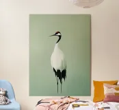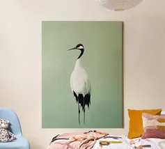 Una serena illustrazione minimalista che cattura l'eleganza e la forza tranquilla di una gru solitaria. I morbidi toni verde salvia e i dettagli puliti e pittorici creano un senso di equilibrio, calma e raffinatezza. Quest'opera d'arte incarna la grazia attraverso la semplicità, rendendola un pezzo ideale per gli interni moderni, per gli spazi di ispirazione scandinava o per qualsiasi stanza che apprezzi la quiete, la concentrazione e la bellezza sobria.