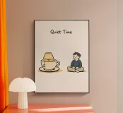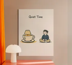Un dolce promemoria per ricordare che una tazza di tè e un momento di pace possono illuminare l'anima. Una stampa serena per gli amanti delle luci soffuse, della consapevolezza e degli angoli tranquilli.