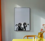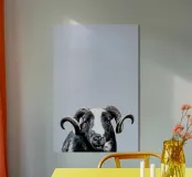Immerse yourself in the rustic charm of this stunning photograph featuring a majestic ram. This captivating farm animal print is perfect for animal lovers and anyone looking to add a touch of rural ambiance to their decor.