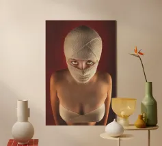 Uno scatto di nudo artistico fetish di una giovane donna parzialmente fasciata