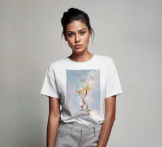Sotto un cielo dipinto con sfumature azzurre e nuvole alla deriva, lo champagne sgorga da un bicchiere di cristallo tenuto in mano da una donna elegante con un delicato guanto di pizzo. Questo momento accattivante svela segreti e accende una magica storia d'amore. Con un'atmosfera elegante e stravagante, il guanto di pizzo bianco e la coppa di champagne, per non parlare del modo in cui il liquido fuoriesce, sembrano quasi una scena di una festa in giardino da sogno e di alta società, non è vero? La "Golden Girl" vi trascina in un viaggio indimenticabile pieno di mistero e fascino.