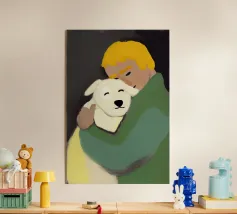 Ragazzo con cane plexiglass