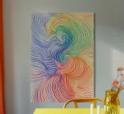 Immergetevi in un mondo di linee ipnotiche e colori potenti! Questo poster d'arte moderna combina dolci transizioni di blu, verde, giallo e rosso in una composizione dinamica e astratta. Perfetto per chi vuole aggiungere un tocco di movimento ed energia al proprio spazio vitale. Ideale per soggiorni, uffici o studi creativi. Il perfetto connubio tra arte ottica (op art) ed estetica minimalista!