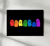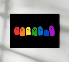 Questo disegno presenta una fila di adorabili fantasmini, ognuno di colore diverso, che formano un arcobaleno allegro e vivace. La combinazione di elementi simpatici e colori vivaci trasforma i fantasmini in personaggi carismatici, dando al pezzo un tocco divertente e irriverente. Con il suo design colorato e allegro, è una scelta eccellente per gli appassionati di cultura pop, di moda e per chiunque voglia mostrare il proprio orgoglio.