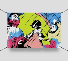 Le opere di Josh Ruggs guardano in modo satirico al sogno americano e a tutti i discorsi sociali, politici e culturali che vi ruotano attorno. Utilizza oggetti familiari di uso quotidiano, celebrità ed estetica comica, chiaramente nella tradizione della Pop Art, come strumenti per visualizzare queste narrazioni della cultura di massa, del consumo e del culto della personalità. Per creare le sue immagini multistrato, l'americano lavora con spray, pittura acrilica, olio, inchiostro e praticamente con ogni superficie che gli capiti sotto mano.