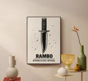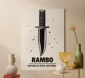 Stampa Rambo, Poster cinematografico alternativo, Bianco e nero, Minimalista, Stampe di qualità, Coltello da sopravvivenza, Illustrazione vettoriale, Cult, Regalo per appassionati di cinema