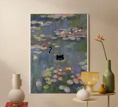 Rana non impressionata in un quadro di ninfee di Monet plexiglass
