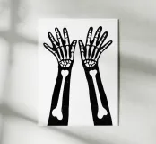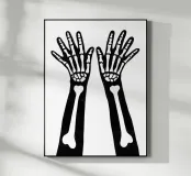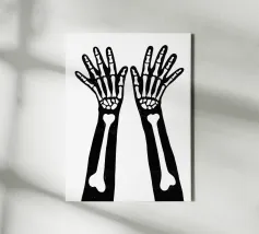 Un paio di audaci mani nere si allungano sulla pagina, con forme semplificate che danzano in una giocosa ripetizione. Alcune si curvano dolcemente, altre si puntano o si allungano, creando una composizione ritmica piena di movimento e di gesti. Con il suo netto contrasto e la sua chiarezza grafica, l'opera parla di connessione, movimento e della tranquilla poesia del tocco umano!