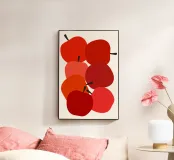 Vibrante illustrazione di mele rosse che cattura l'essenza fresca e succosa del raccolto autunnale. Perfetta per l'arredamento della cucina, per i temi dei mercati agricoli e per gli amanti della frutta, questa opera d'arte aggiunge un tocco caldo e invitante a qualsiasi spazio.