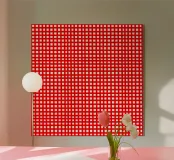Red square mesh grid plexiglass