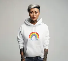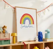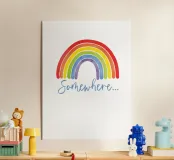 Arcobaleno colorato, scritta "Somewhere..." Dipinto a mano con acquerello