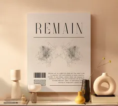 „REMAIN | 01" verbindet minimalistische Ästhetik mit abstrakter Kunst. Die feinen, symmetrischen Linien und Punkte erzeugen eine dynamische Balance zwischen Struktur und Chaos. Dieses Design symbolisiert Beständigkeit und Veränderung zugleich. Die reduzierte Farbpalette und klare Typografie verleihen ihm eine moderne, meditative Wirkung. Perfekt für Kunstliebhaber, die emotionale Tiefe und abstrakte Ausdruckskraft schätzen.