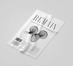 "REMAIN | 12" zeigt eine fließende, organische Form, die an Blüten oder Muscheln erinnert. Feine Linien folgen der Krümmung und erzeugen Tiefe. Die Komposition kontrastiert mit den bisherigen geometrischen Werken und bringt eine neue Dynamik in die Serie. Bewegung und Wachstum stehen im Fokus.