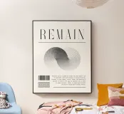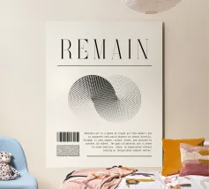 "REMAIN | 15" zeigt zwei ineinandergreifende Kreise, die durch ein Punktmuster definiert sind. Der Übergang von dunkel zu hell erzeugt eine optische Spannung. Die Verschmelzung symbolisiert Balance, Dualität oder Veränderung. Die minimalistische Gestaltung regt zum Nachdenken über Gegensätze und Harmonie an.